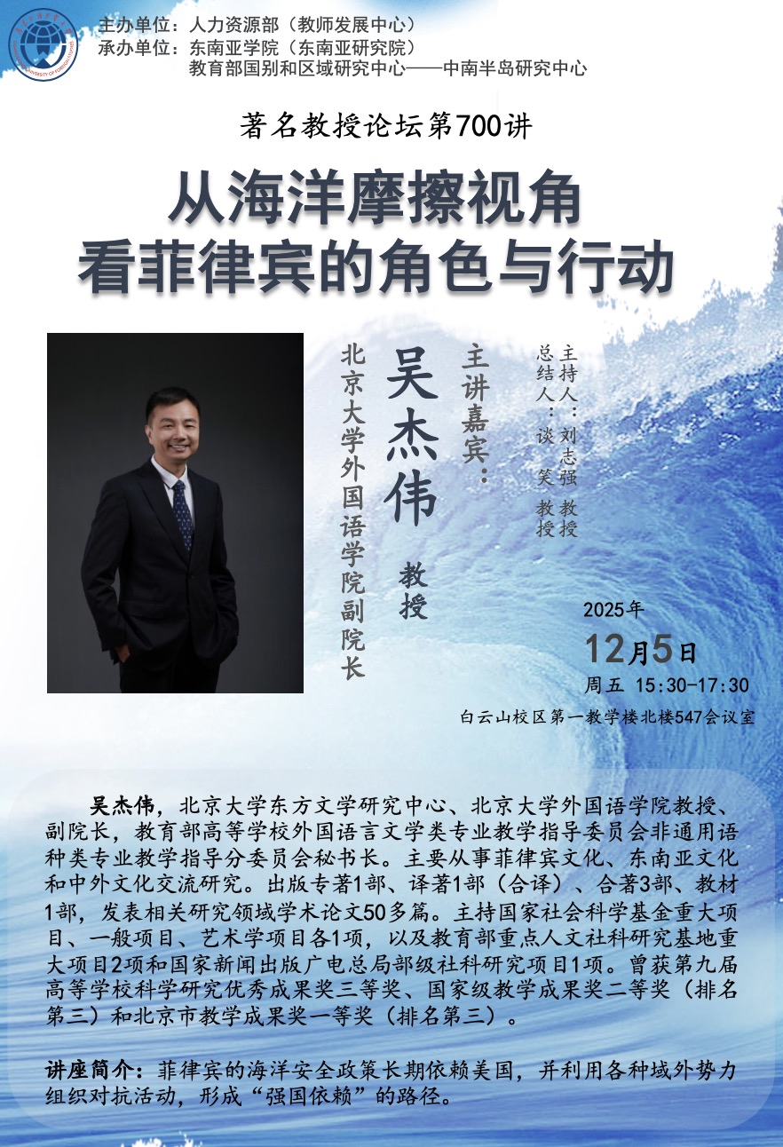著名教授论坛第700讲:从海洋摩擦视角看菲律宾的角色与行动