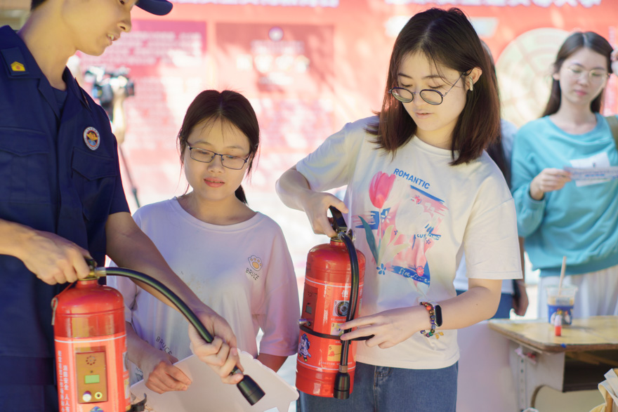 现场还进行了安全技能实操演练。在专业人员的指导下,学生们试穿了消防战斗服,学习了如何正确使用灭火器,掌握了紧急情况下的防身术等实用技能,还近距离参观抢险救援车。安全知识竞答展区挤满了学生,大家争先恐后地回答问题,不仅增强了自身的安全知识,还赢得了精美的礼品。师生的参与热情高涨,活动现场洋溢着欢乐和轻松的氛围。学生们积极参与,现场气氛热烈,大家纷纷表示通过这次活动收获颇丰。