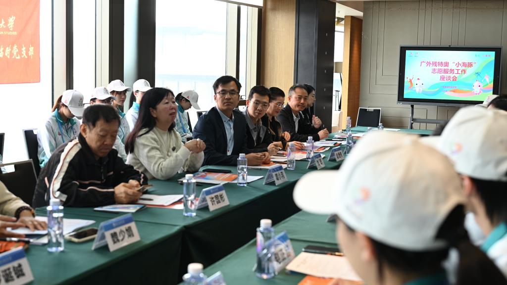 座谈会上,葛小月对全体 “小海豚” 志愿者致以诚挚问候和殷切勉励。她强调,大型赛事志愿服务是锤炼品格、增长才干的宝贵实践课堂,更是展现青年担当的重要舞台。希望志愿者们珍惜这一难得的锻炼机会,继续发扬吃苦耐劳、勇于担当的奋斗精神,在服务中深刻感悟残疾人运动员的拼搏意志与生命力量,将这份宝贵的精神财富转化为自身成长的不竭动力,充分展现广外学子的青春风采、责任担当与家国情怀。